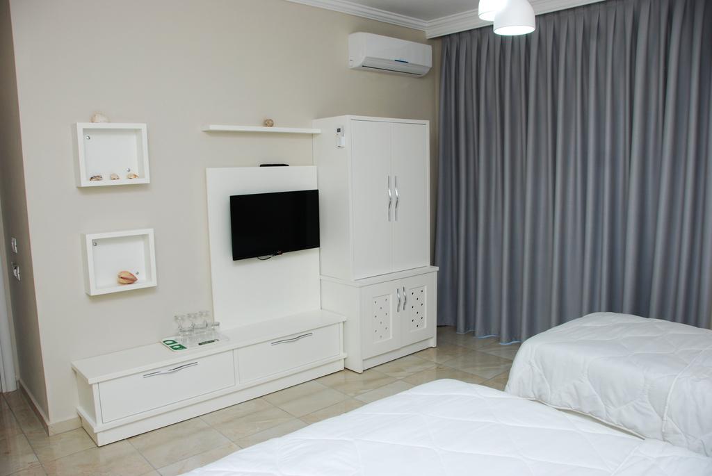 Sadržak studia i apartmana: kuhinja, kupatilo, klima, tv, balkon. U višekrevetnim apartmanima postoji mogućnost da bude pomoćni ležaj (sofa)