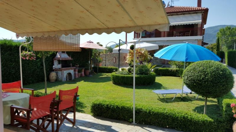 Nalazi se u mirnom delu Nea Vrasne u prelepom ambijentu, besprekorno uredjenom dvorištu, okruženom zelenilom. Bezbroj detalja prilikom uredjaja ove vile, na kojima vlasnici očigledno nisu štedeli, čini ovu vilu jednom od najluksuznijih i najlepših u Nea Vrasni. Ambijent dvorišta upotpunjuju nekoliko roštilja, zajedničke garniture za sedenje, sadržaj za decu... Studiji i duplex-apartmani, moderno opremljeni, će svakako učiniti vaš boravak prijatnim. Na nepunih 400m od vile se nalazi trg sa dosta sadržaja: igralište za decu, poslastičarnica, pekara, mesara, mini market... Ispred vile je uredjen parking prostor.