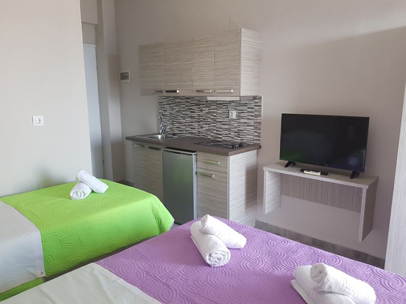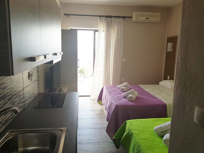 Nalazi se na uzvišenju na 270m od Paradizo plaže, a na oko 500m od centra Neos Marmarasa. U ponudi su studiji na prizemlju, prvom i drugom spratu. Većina ima prelep pogled sa visine na more. Svi studiji imaju TV, signal za besplatno korišćenje bežičnog interneta kao i klima uređaj čije je korišćenje uključeno u cenu.