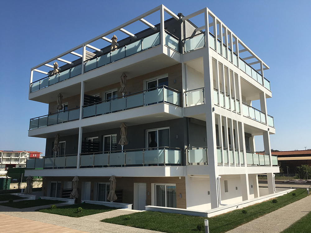 Nova luksuzna kuća nalazi se na oko 290m od najlepšeg dela peščane plaže u Sarti Beach-u. Veoma prostran kompleks gostima nudi veliko travnato dvorište sa bazenom od preko 70m2, dečijim bazenom od 12m2, roštilj i parking. U ponudi su apartmani na prvom, drugom i trećem spratu, kao i studiji i apartman u niskom prizemlju. Svi imaju SAT TV, klima uređaj čije je korišćenje uključeno u cenu kao i signal za besplatan WiFi. Organizovano je i čišćenje studija i apartmana nekoliko puta tokom smene.
