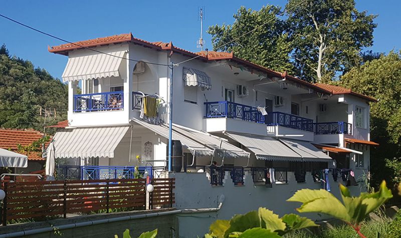 Nalazi se na oko 180m od plaže Porto Koufoa. U ponudi su studiji na prvom spratu za dve do četiri osobe. Svi imaju TV, signal za besplatno korišćenje bežičnog interneta kao i klima uređaj čije je korišćenje uključeno u cenu. Terase imaju bočni pogled na more. Gostima je na raspolaganju lepo uređeno dvorište ispred kuće gde je moguće parkiranje ograničenog broja vozila.
